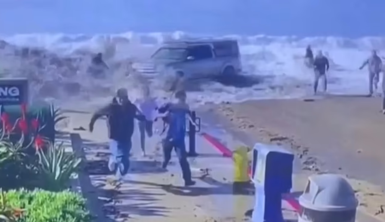 والتقطت مشاهد مذهلة من فينتورا وخليج مونتيري لتحطم الأمواج عند الشاطئ – ما أدى إلى جر الناس والمركبات إلى البحر.