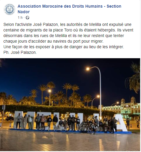 وتعليقا على الواقعة، قالت الجمعية المغربية لحقوق الإنسان، فرع الناظور، إن طرد المهاجرين من “ساحة الثيران”، جعلهم مشردين في شوارع المدينة المحتلة.