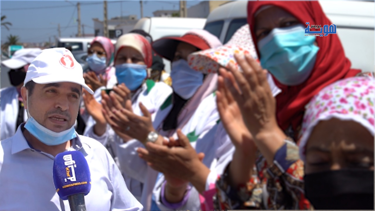 شاهد.. “الحكرة” والأجور الزهيد تخرج عاملات النظافة بالمدارس للاحتجاج