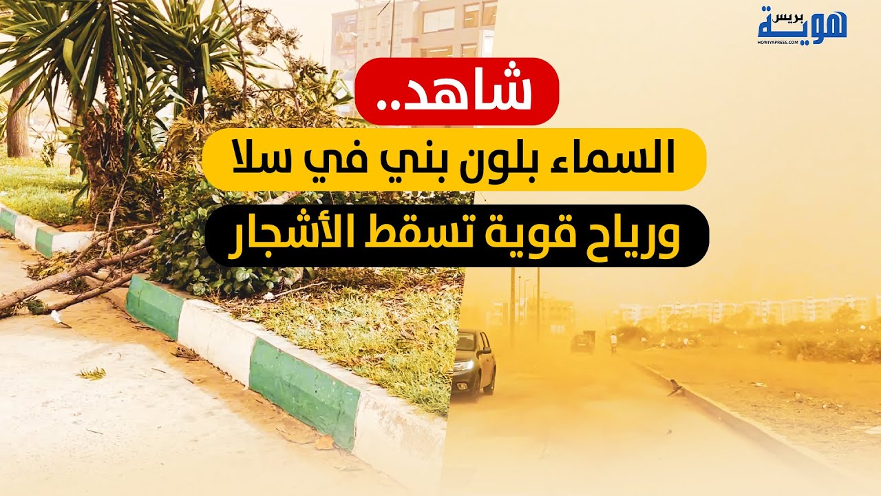 شاهد.. السماء بلون بني ورياح قوية تسقط الأشجار بسلا