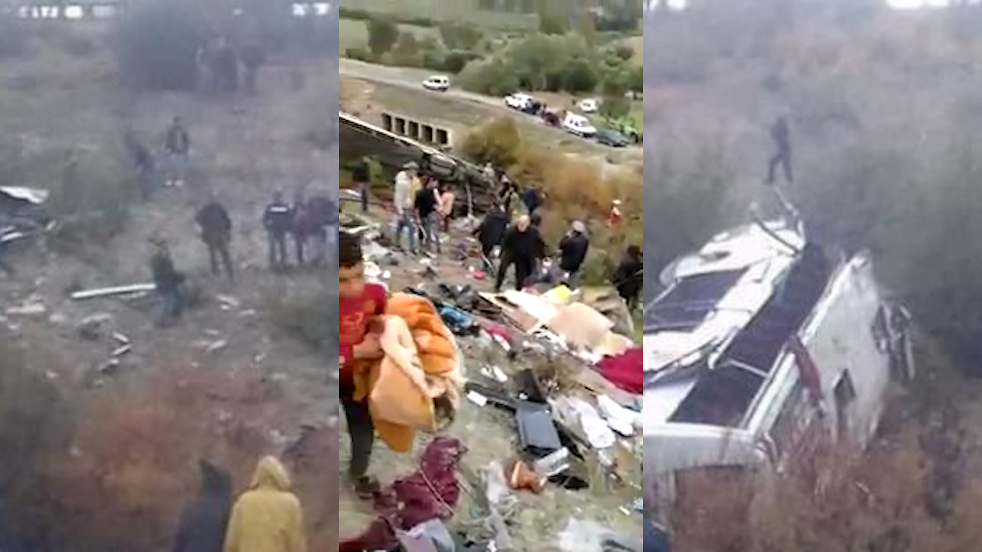 شاهد..اللحظات الأولى بعد وقوع فاجعة انقلاب حافلة ركاب بتازة