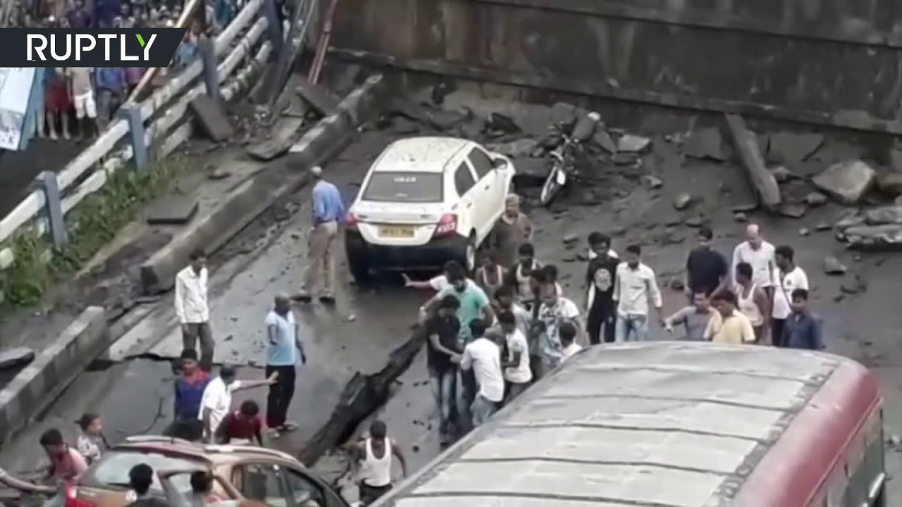 شاهد.. انهيار جسر رئيسي في مدينة كلكوتا شرق الهند