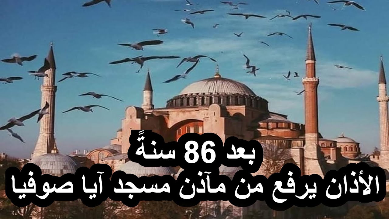 شاهد.. بعد 86 سنة من تحويله متحفا الأذان يرفع لأول مرة من مآذن مسجد “آياصوفيا”