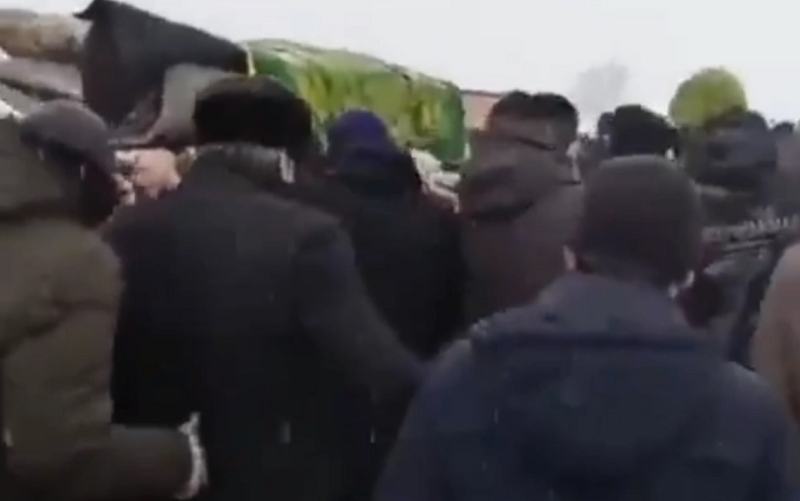ونشر موقع “فونتانكا” لقطات من مواقع للتواصل الاجتماعي لموكب ضم عشرات الأشخاص في شوارع يغطيها الجليد، وهم يرددون أدعية دينية، ويحملون ما بدا أنها جثة ملفوفة بقماش أخضر.