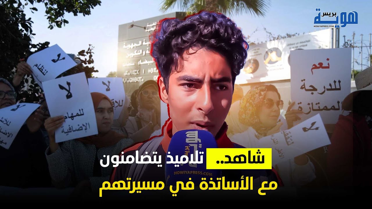 شاهد.. تلاميذ يتضامنون مع الأساتذة في مسيرتهم