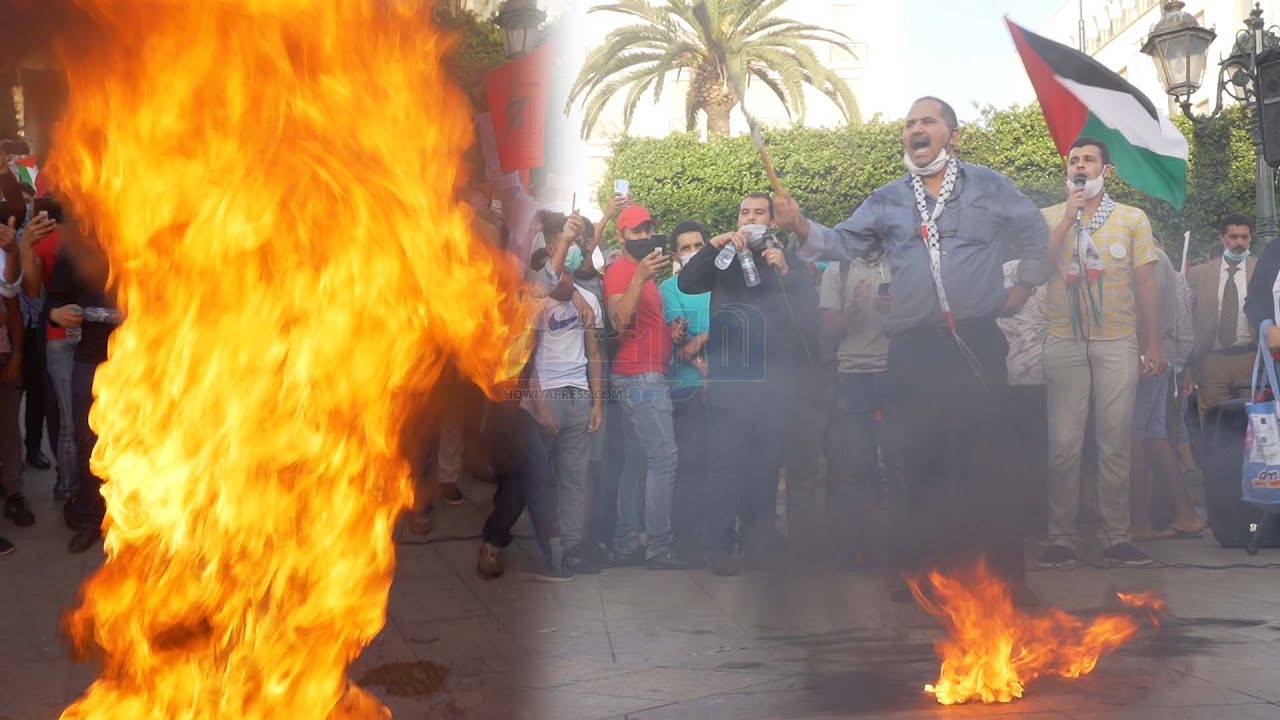شاهد.. حرق العلم الصهيوني بالعاصمة الرباط