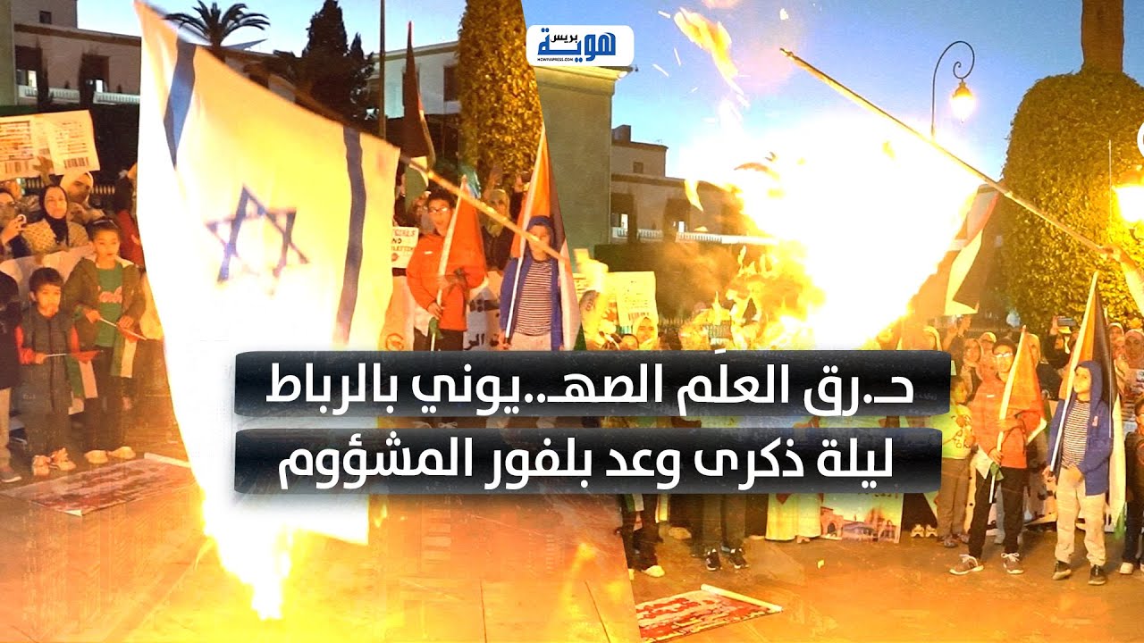 شاهد حرق العلَم الصهيوني بالرباط ليلة ذكرى “وعد بلفور” المشؤوم
