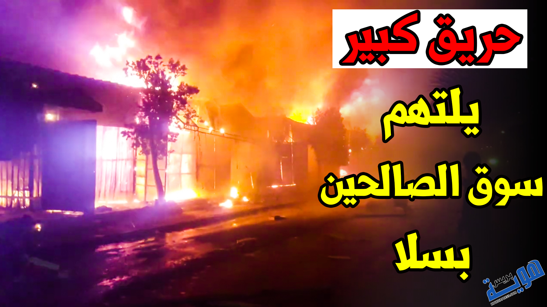 شاهد.. حريق ضخم يلتهم سوق الصالحين بسلا