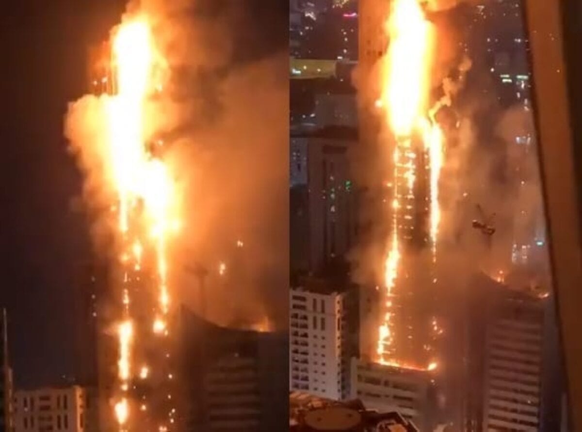 شاهد.. حريق يلتهم ناطحة سحاب وسط الشارقة