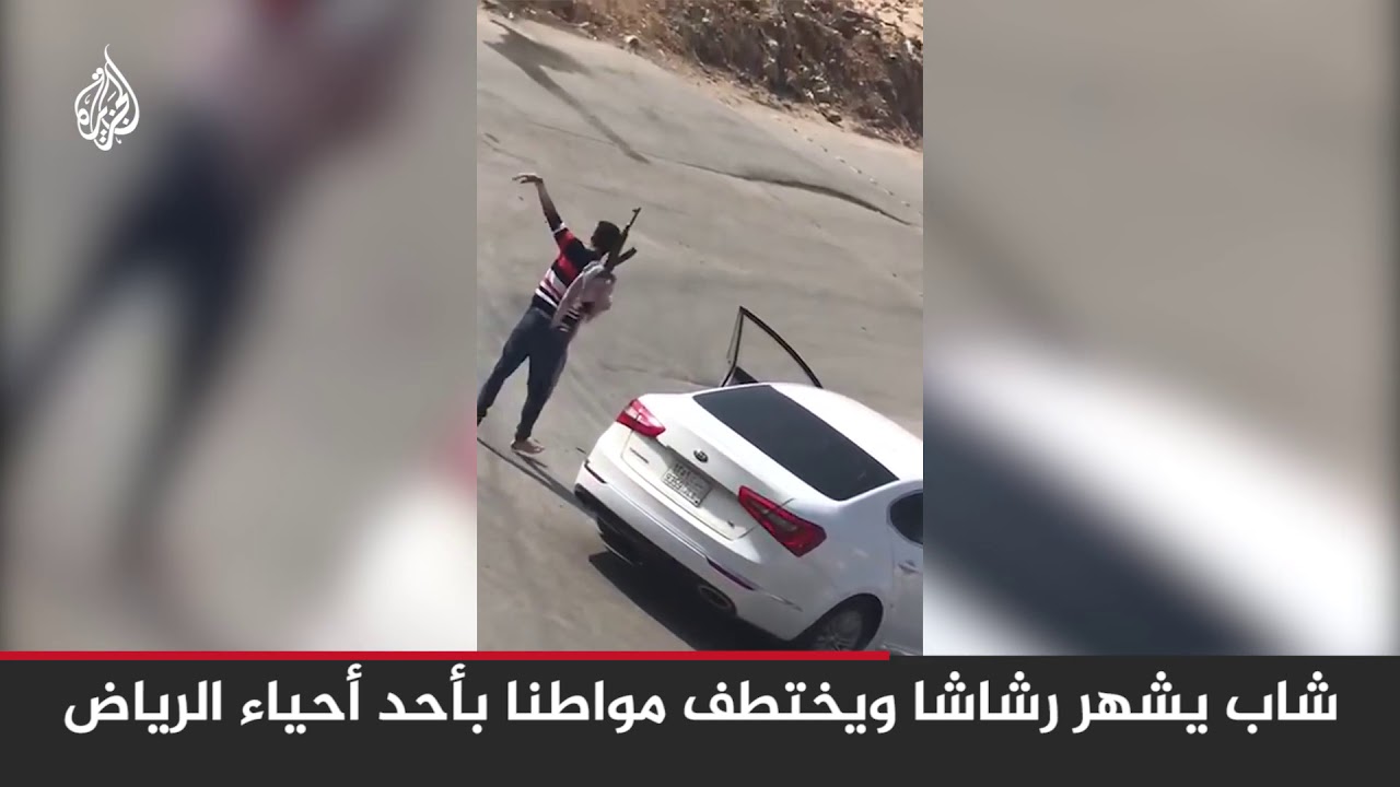 شاهد.. شاب يشهر رشاشا ويختطف مواطنا بأحد أحياء الرياض