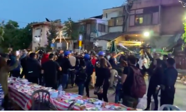 شاهد.. صهاينة يعتدون على موائد إفطار بـ”حي الشيخ جراح” بالقدس