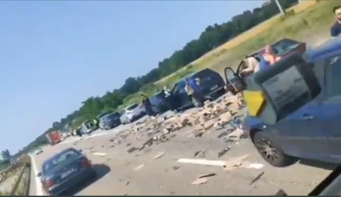 وتسبب الحادث في تدمير الجانب الأيمن بالكامل من المقطورة وتناثر الآلاف من كبسولات القهوة لنحو 400-500 متر على طول الطريق، وانتشار مئات الصناديق المكسورة على الأسفلت في كل مكان.