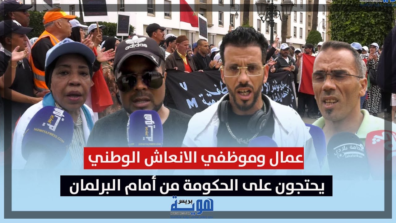 شاهد.. عمال وموظفي الإنعاش الوطني يحتجون على الحكومة أمام البرلمان