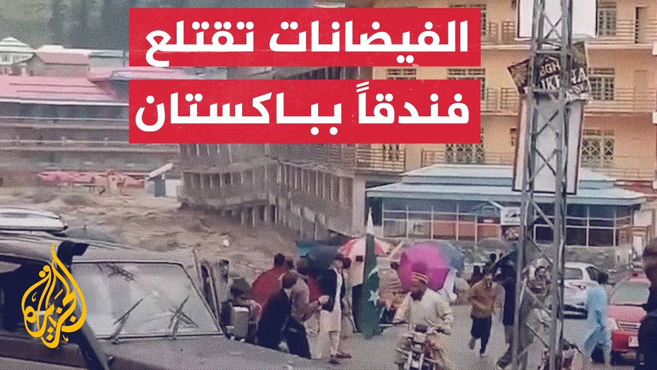 شاهد لحظة اقتلاع الفيضانات العارمة لمبنى فندق بباكستان