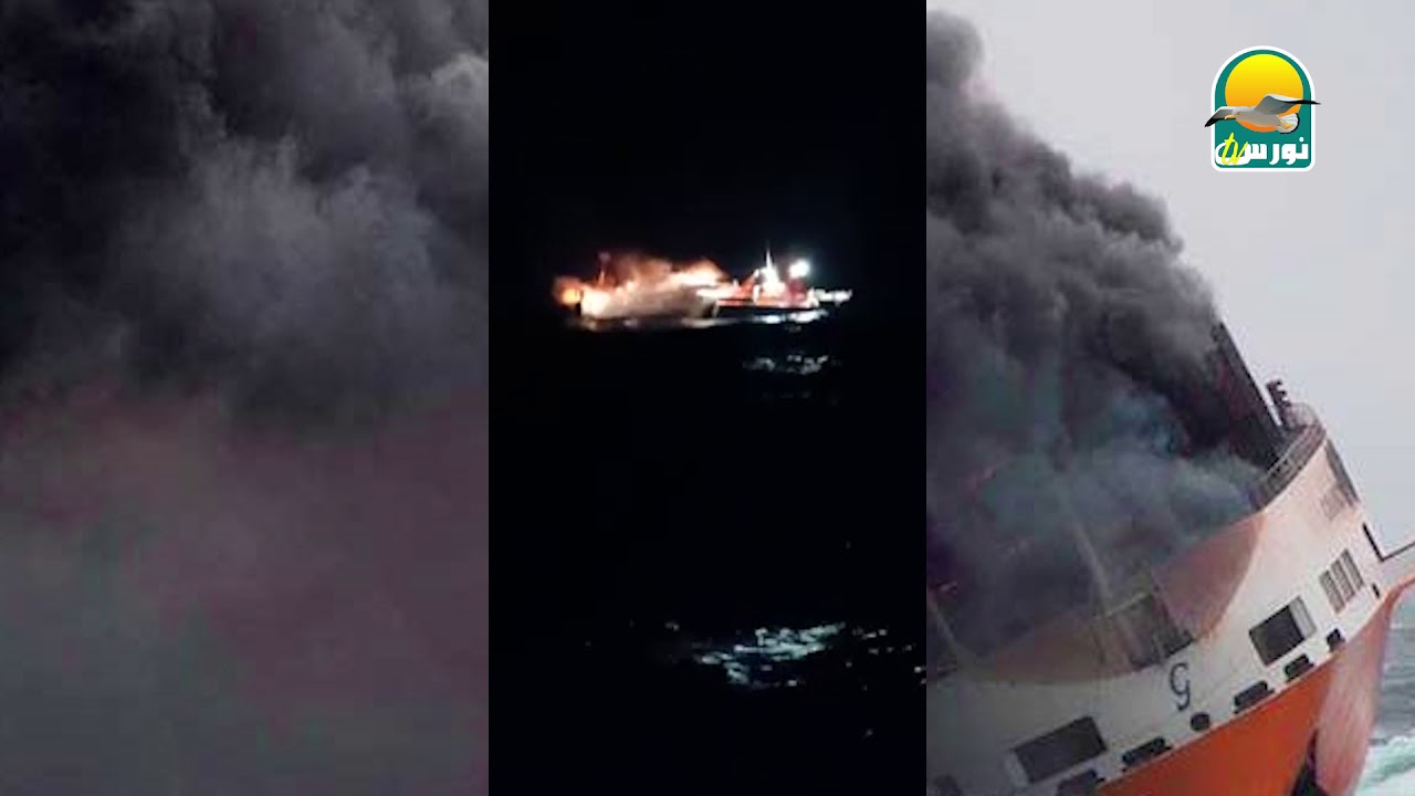 شاهد..لحظة اندلاع النيران في مركب صيد في سواحل ميناء أكادير