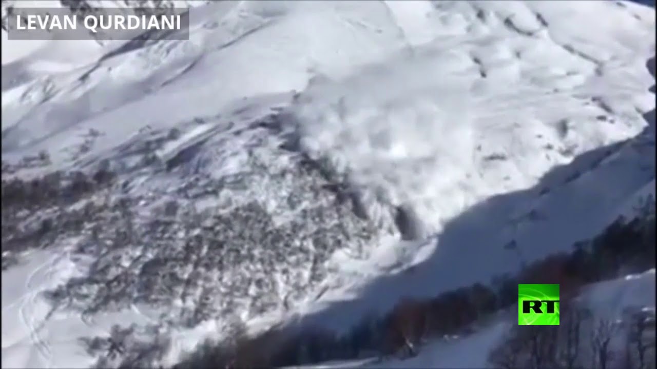 شاهد.. لحظة انهيار ثلجي في جبال جورجيا