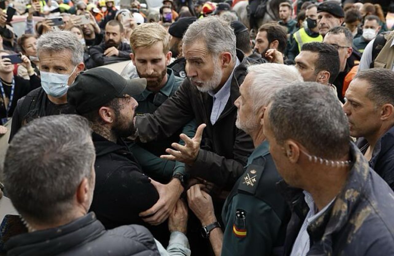 تعرض ملك إسبانيا فيليبي السادس إلى اعتداء من طرف متضرري الفيضانات بمدينة فالنسيا، التي زارها اليوم الأحد بمعية الملكة ليتيزيا، إلى جانب كل من رئيس الوزراء بيدرو سانشيز والقائد الإقليمي للمنطقة كارلوس مازون.