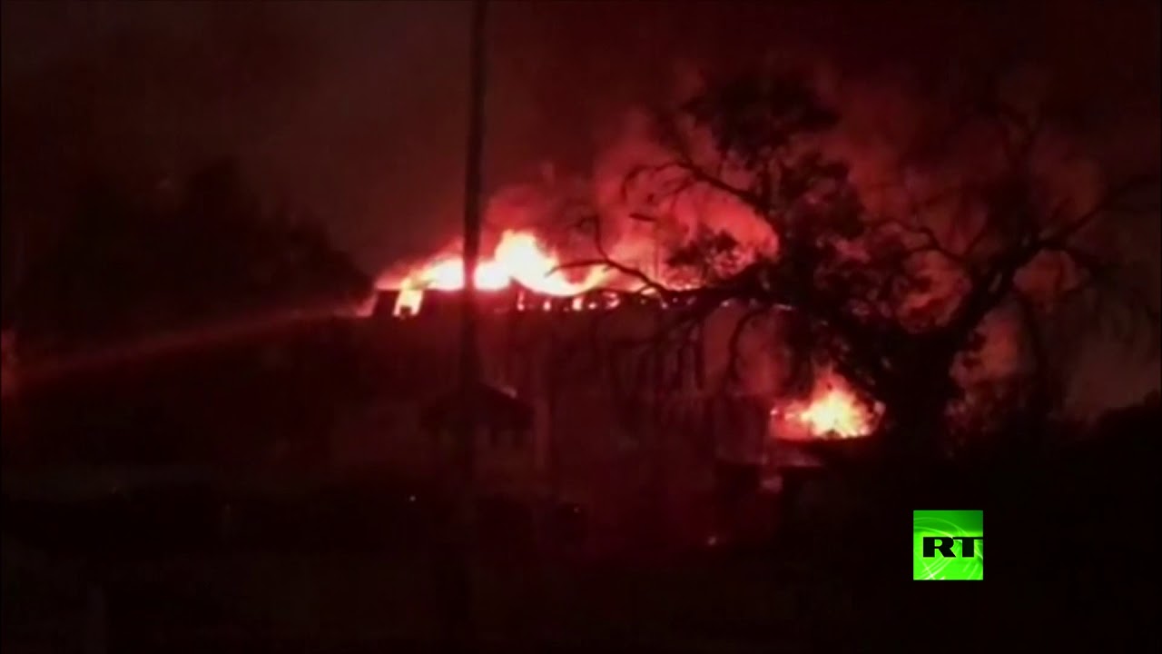 شاهد.. محتجون يحرقون مبنى محافظة البصرة