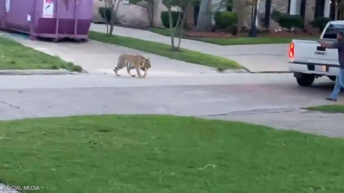 شاهد.. نمر يتجول في حي سكني بولاية تكساس