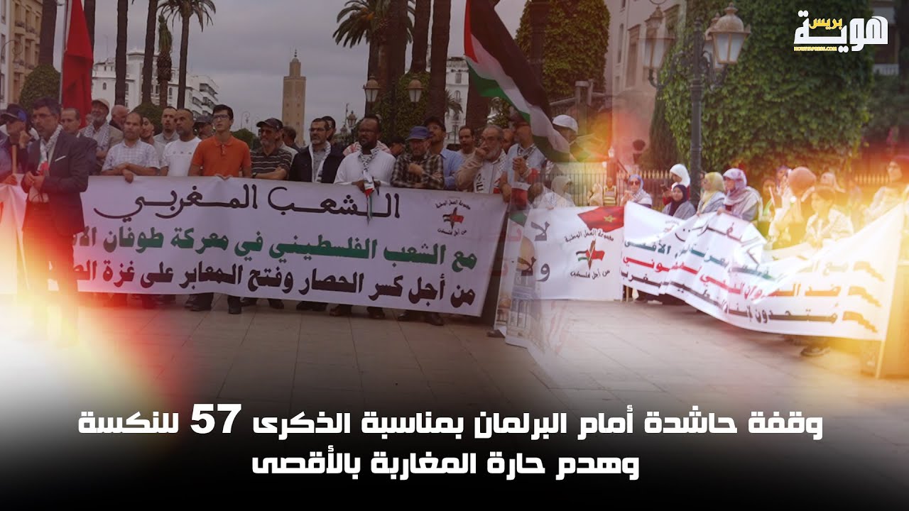 شاهد.. وقفة حاشدة أمام البرلمان بمناسبة الذكرى 57 للنكسة وهدم حارة المغاربة بالأقصى