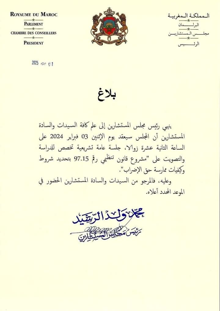 شروط ممارسة الإضراب.. بـلاغ مهم من مجلس المستشارين (وثيقة)