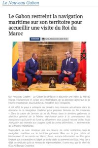 وحسب المصدر الإعلامي ذاته فقد أكد أنه “في سياق وصول ملك المغرب إلى الغابون، يبلغ المدير العام للبحرية التجارية جميع البحارة أنه، اعتبارا من يوم الاثنين 13 دجنبر وحتى إشعار آخر، تُمنع جميع عمليات نقل المستخدمين على مستوى مناطق معينة تحددها السلطات الغابونية التابعة لوزارة النقل” .