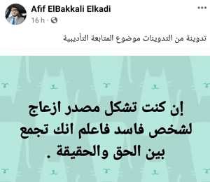 وأضاف موضحا “بعد الاطلاع على ما نشره الأستاذ البقالي على صفحته في الفيسبوك، تأكد لنا ما كنا متأكدين منه. نعم إنها بضع كلمات تعبر عن خواطر وقناعات تعلن الرفض التام لمظاهر الرشوة و الفساد في المجتمع ككل دون ربطها بواقعة معينة أو شخص محدد”.