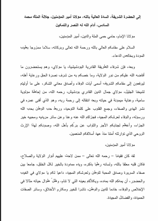 وجاء في نص الرسالة أن “استمرار هذا التنازع يُدخل المريدين في حالة من الحيرة والاضطراب، ويعطي صورة سلبية عن الزاوية التي عُرفت دوماً بالسكينة والذكر والخدمة الروحية”.