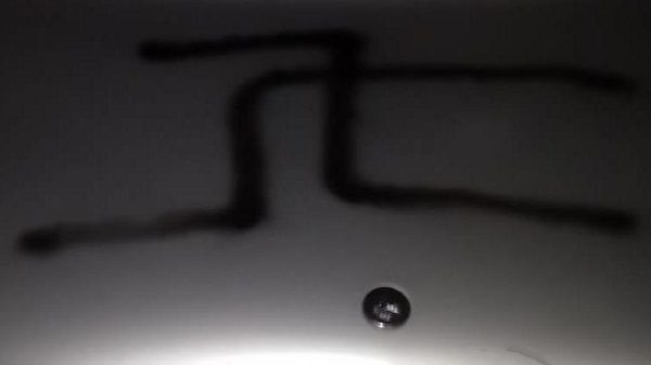 وأوضح البيان أن السائل استُخدم لرسم صليب معقوف على غطاء محرك السيارة، وأنه بعد فحص المنطقة تبيّن وجود الرمز نفسه على العديد من السيارات وصناديق البريد وواجهات المباني.