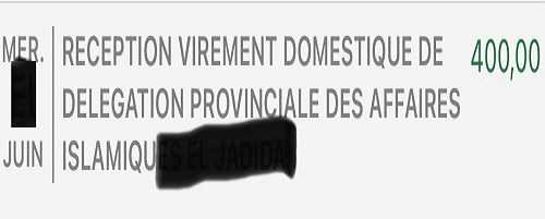 وهذه صورة إشعار بنكي لتحويل مبلغ المكافأة لأحد الخطباء، وفيه فقط 400 درهم: