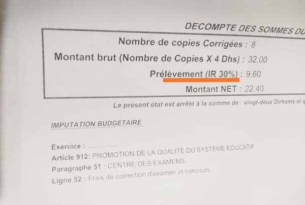 ويتعلق الأمر بالرفع من نسبة الضريبة المفروضة على المبالغ المحصل عليها من خلال تصحيح أوراق الامتحانات الإشهادية إلى 30 ٪ بعد أن كانت 20 ٪.