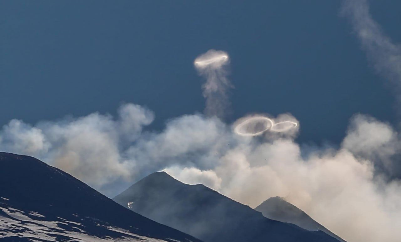 في ظاهرة غريبة، أطلق بركان “إتنا” في إيطاليا حلقات بركانية على شكل دوائر في السماء.