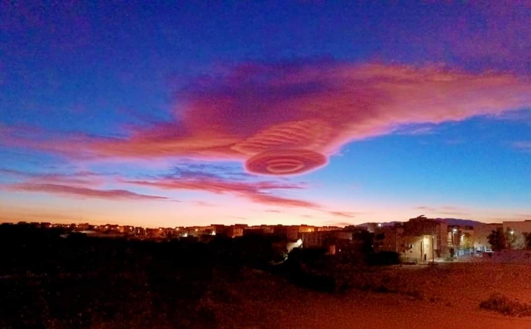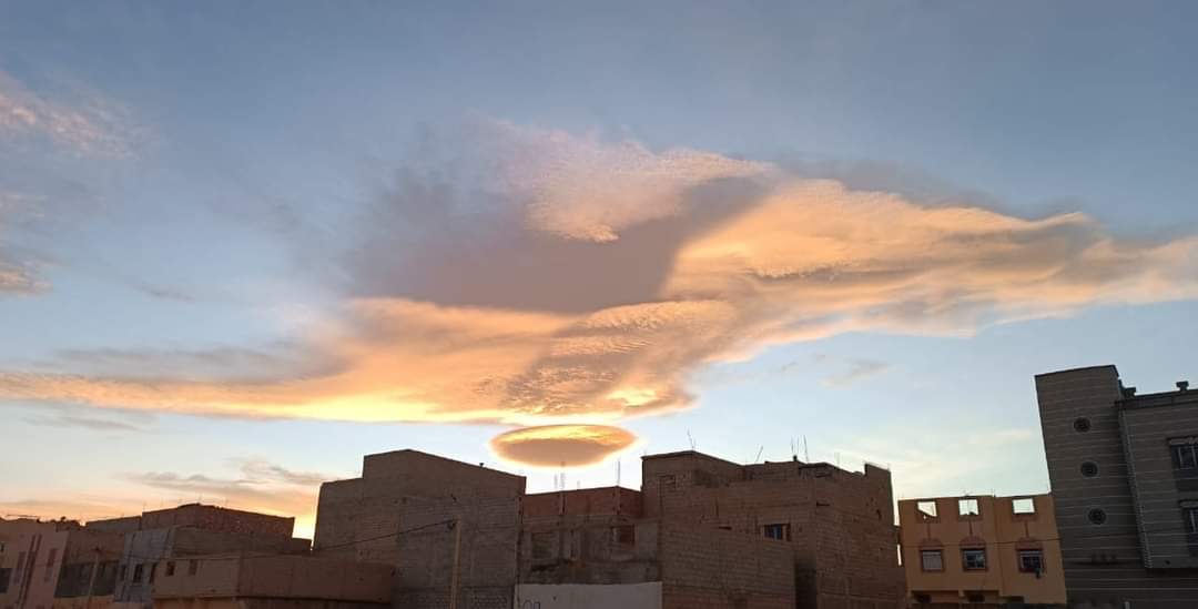 ووثق عدد من النشطاء بالمنطقة صورا وفيديوهات تؤكد حقيقة ظهور هذه السحب “النادرة”، والتي تعرف باسم “السحب العدسية”.