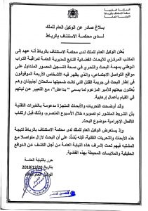 وخلص البلاغ الى أن الوكيل العام للملك، إذ يستعرض نتيجة هذه الأبحاث والخبرات التقنية، فإنه يشدد على أن البحث لازال متواصلا مع المشتبه فيهم تحت اشراف هذه النيابة العامة من أجل الكشف عن الدوافع الحقيقية والملابسات المحيطة بهذه القضية.