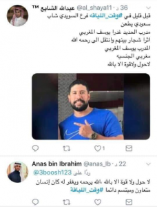 وبحسب تدوينة نشرها الزميل الصحافي أحمد المدياني، سكرتير تحرير، موقع تيل كيل، وهو أخ زوجة القتيل، فقد قال أن: “نسيبه تعرض لطعنات غادرة من طرف أحد السعوديين، هذا المساء”.