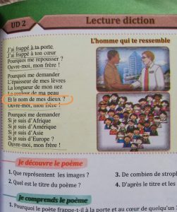 ونقل عبد المجيد أيت عبو صورتين، الأولى لغلاف المقرر الدراسي الذي يعود لمقرر الفرنسية الخاص بتلاميذ المستوى السادس ابتدائي، والثانية للنص الذي يحمل عبارة: