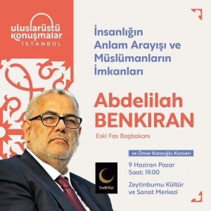 وحسب إعلان جمعية “yedihilal” التركية، يؤطر عبد الاله بنكيران، مساء اليوم الأحد، محاضرة بعنوان “بحث الإنسانية عن معنى وإمكانيات المسلمين”.