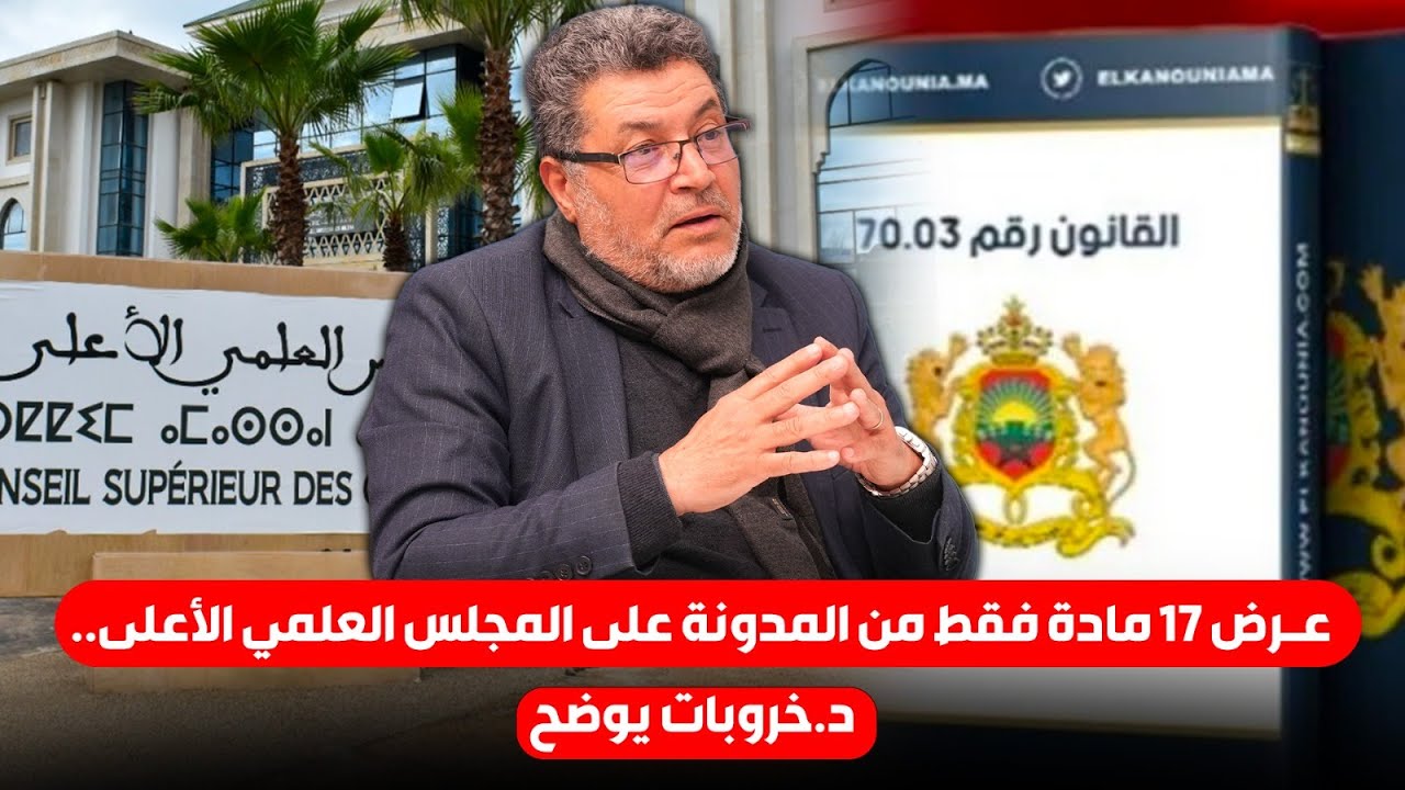 عرض 17 مادة فقط من المدونة على المجلس العلمي الأعلى وعلاقتها بالدين.. د.خروبات يوضح (هوية بريس) 08 مارس 2025 17:11