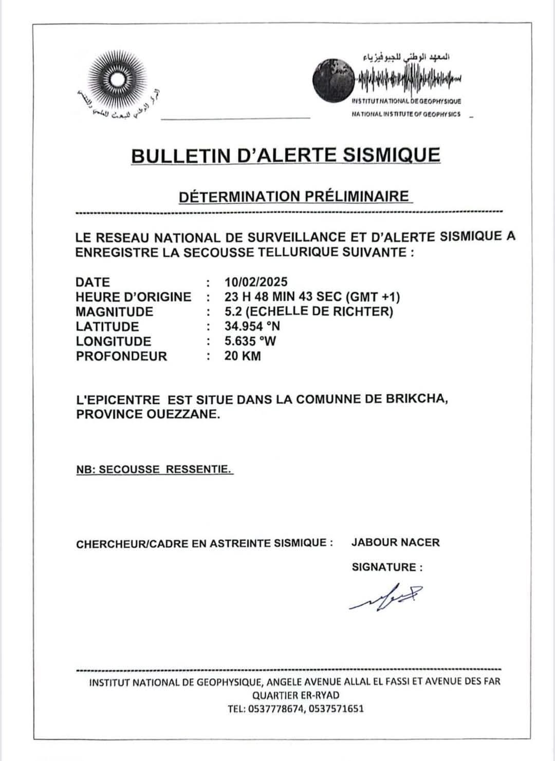 شهدت منطقة قريبة من مدينة القصر الكبير مساء يوم الاثنين 10 فبراير زلزالًا بلغت قوته 5.4 درجات على سلم ريختر، وفقًا لما أكده مدير المعهد الوطني للجيوفيزياء، ناصر جبور.