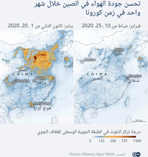 صور ناسا أظهرت انخفاضا في مستويات أكسيد النيتروجين، وذلك بعد تراجع قياسي في نشاط المصانع الصينية، بعدما أوقف المصنّعون الإنتاج في إطار جهود تستهدف احتواء الفيروس.