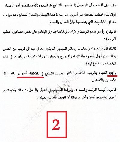 ثم من ملاحظاتي عن الخطبة الموحدة الأولى (من غير الأخطاء الإملائية الكثيرة) أن بعض ما ورد في الخطبة لا علاقة للمصلين به.. بل هو أولى أن يخاطب به الخطباء والقيمون الدينيون.. في مذكرة أو وثيقة موجهة لهم (وثيقة 2)..