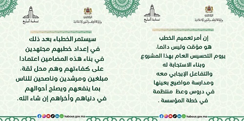 وأما القائل أن الأمر لم يكن يستدعي هذا التعجل.. فالجواب: كيف لا يتوجس من جعل الخطبة موحدة ونحن أمام خطة دينية جديدة (خطة تسديد التبليغ) والتي يشرف عليها المجلس العلمي الأعلى ووزارة الأوقاف فنكون هنا أمام احتمالية استمرار الخطبة الموحدة.. لأن هاته الخطة ليست مؤقتة بل أظنها مستمرة ودائمة في تدبير الشأن الديني للمغاربة.. فلابد من استنكار ما يتخوف منه من قبيل إجراء “تأبيد الخطبة الموحدة”..
