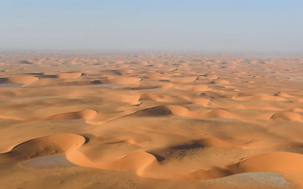 انتشر على مواقع التواصل الاجتماعي مقطع فيديو يظهر سيلا من المياه في منطقة نفود الدحي بصحراء الربع الخالي السعودية.