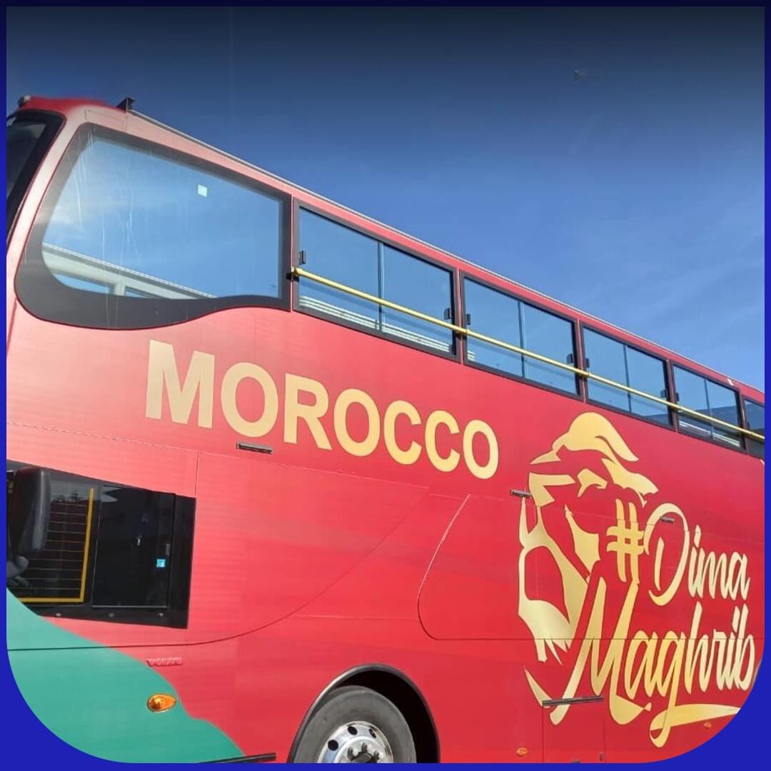 فقد نشرت العديد من وسائل التواصل الاجتماعي في الساعات الأخيرة الماضية صورة للحافلة المكشوفة التي ينتظر ان يجوب الفريق الوطني شوارع الرباط على متنها، حيث سيتعرض المغاربة لاستفزاز هوياتي بسبب عبارة باللغة الإنجليزية و الدارجة بالأحرف الفرنسية على ديزان الحافلة.