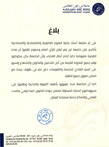 تفاعلا مع فضيحة اعتقال أستاذ جامعي بسبب الاتجار في شواهد “الماستر” خرجت جامعة ابن زهر ببلاغ للرأي العام.