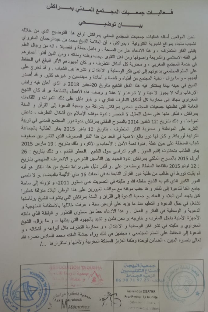 فعاليات جمعيات المجتمع المدني بمراكش تندد وتشجب اتهام الشيخ المغراوي بالأفكار الداعشية (بيان)