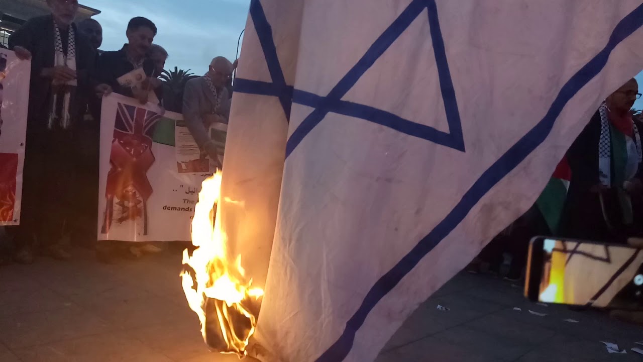 فيديو.. المغاربة يحرقون العلم الصهيوني في مئوية “وعد بلفور”!!