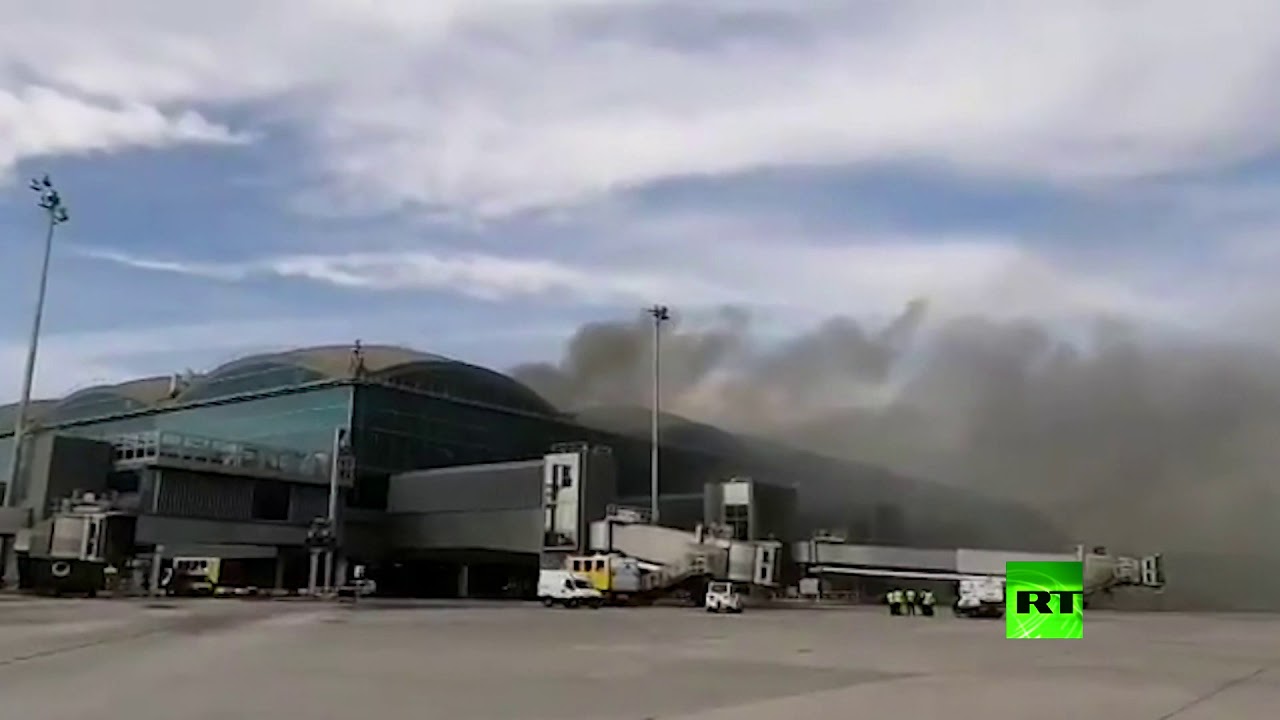 فيديو.. اندلاع حريق في أحد مطارات إسبانيا