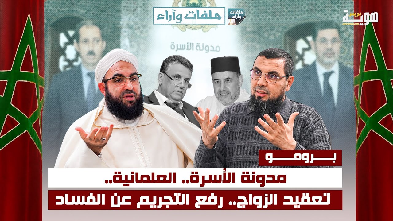 فيديو.. برومو: مدونة الأسرة.. العلمانية.. تعقيد الزواج.. رفع التجريم عن الفساد – ملفات وآراء (هوية بريس) 04 ديسمبر 2023 20:43