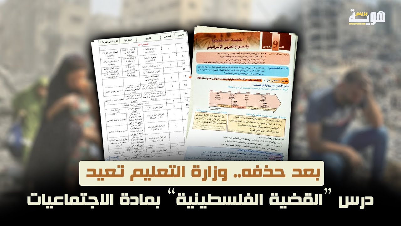 فيديو.. بعد حذفه.. وزارة التعليم تعيد درس القضية الفلسطينية لمادة الاجتماعيات (هوية بريس) 26 يناير 2024 18:27